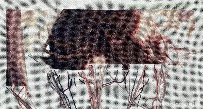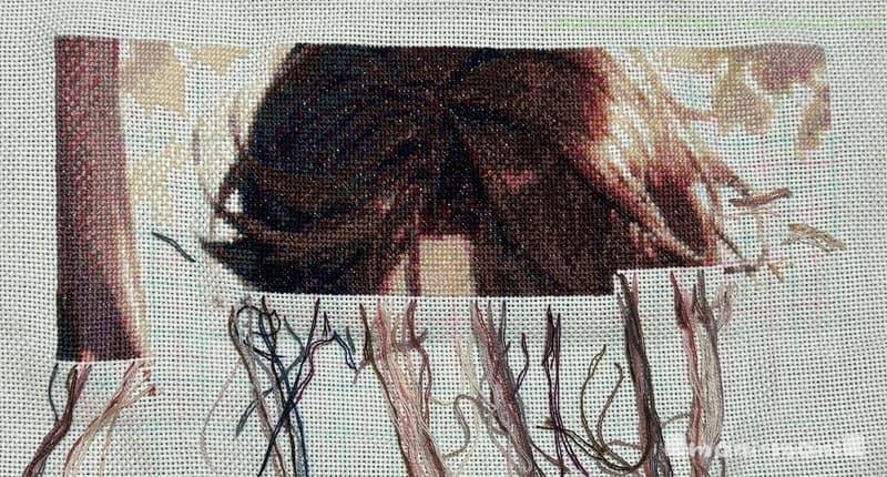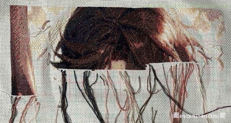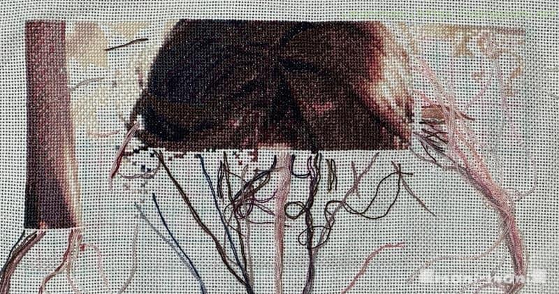 肌色部分の糸が本当に微妙な色の違いなので、時々記号を間違えてパーキングしてしまいます。パーキング法に慣れていないのもあると思いますが、図案の読み間違えにひやりとします。全て直せていたらよいのですが…。
