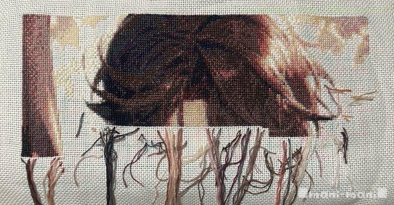 7月に突入し、引き続き男性の頭と背景をステッチ中です。白は仕上げで刺す予定なので、相変わらず白抜きで刺しています。