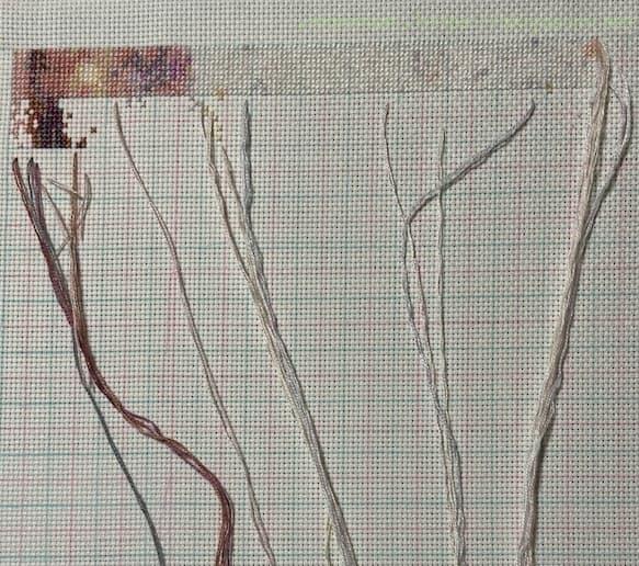 家にあったアイーダ18カウントの布を使用していますが、少々パリッと硬い感じです。ハリがあるので、刺繍枠にセットするとピンと張ってとても刺しやすいです。