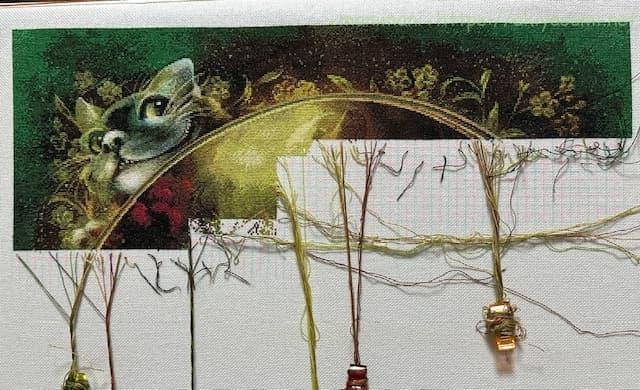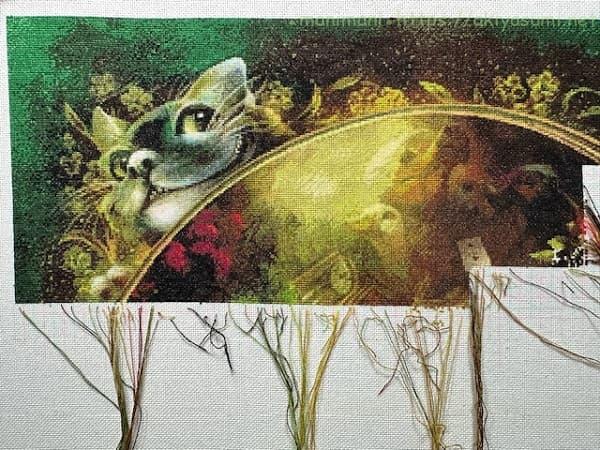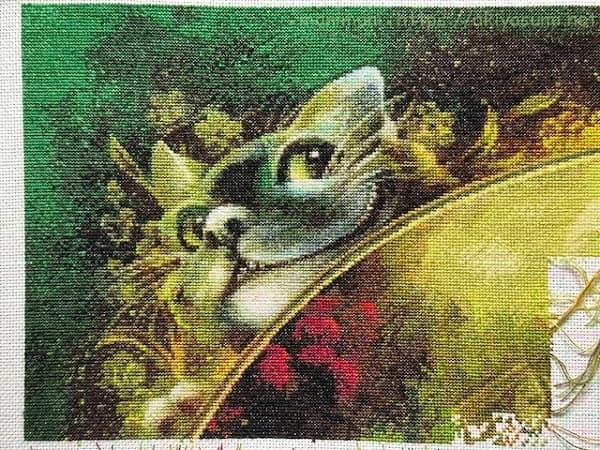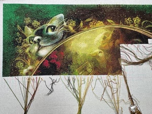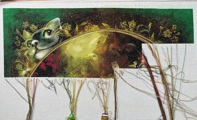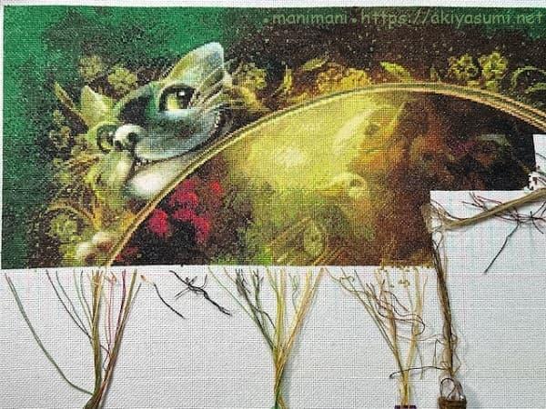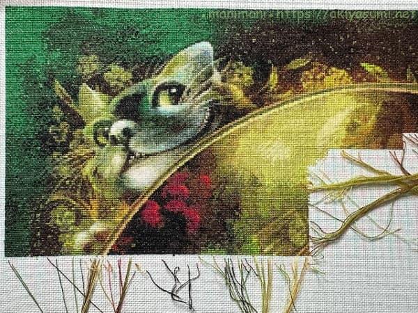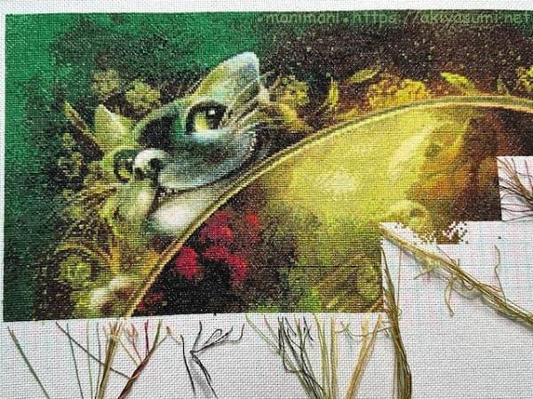 手元ばかりをルーペで見ているので、糸変えをして針を刺してを延々繰り返しているとその時点では何を刺しているのか分からないのですが、全体を見るとちゃんと絵が出来上がっているのでクロスステッチは面白いとこういう時に改めて思います。