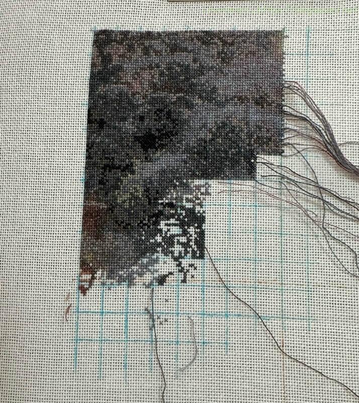 自分で刺していて驚いたのが、「本当に絵画のような絵ができあがるのだなぁ」という感想。目が細かいため色変えがとても大変ですが、絵が浮かび上がってくると感動します。