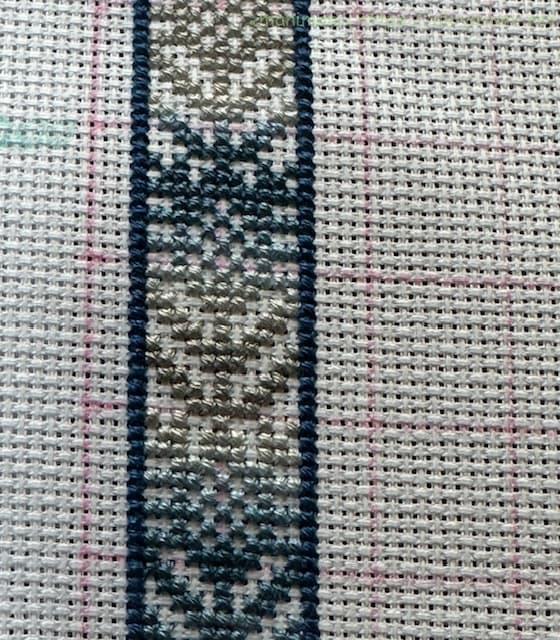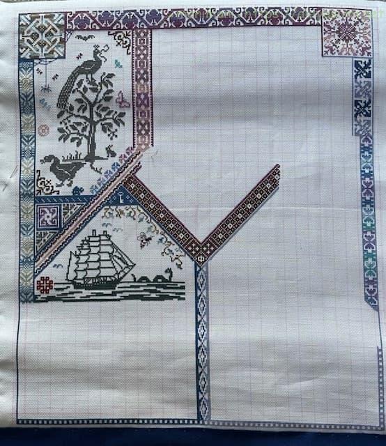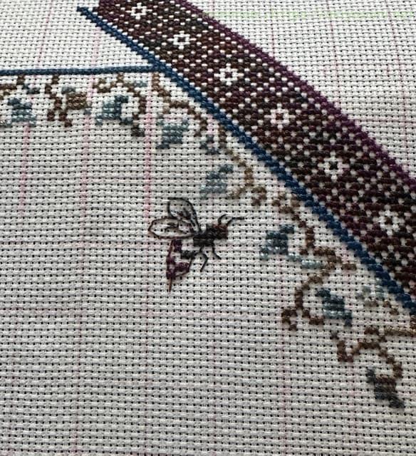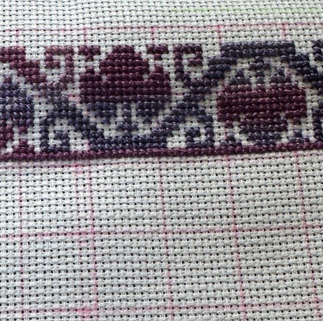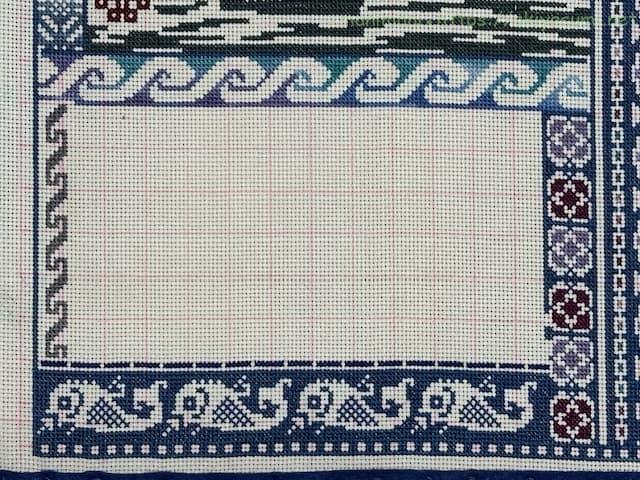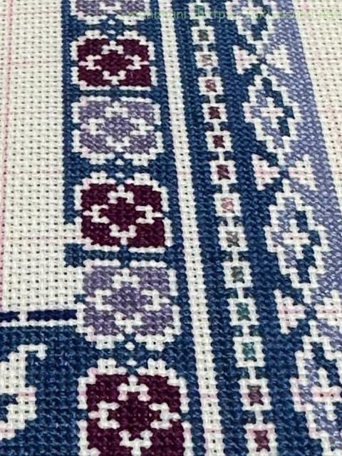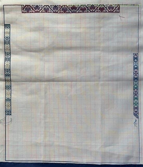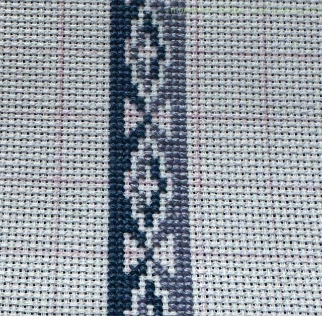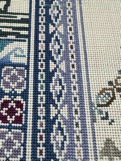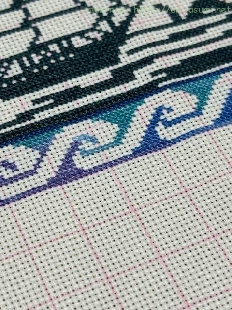 40cm強のやや大きめの作品ですが、アイーダ18カウントなので刺すのにはあまり苦労はありません。ただただひたすら長ーーーいラインをステッチするのが大変ではありますが、グラデーションがきれいにできるのでめちゃくちゃ楽しんでいます。
