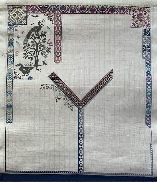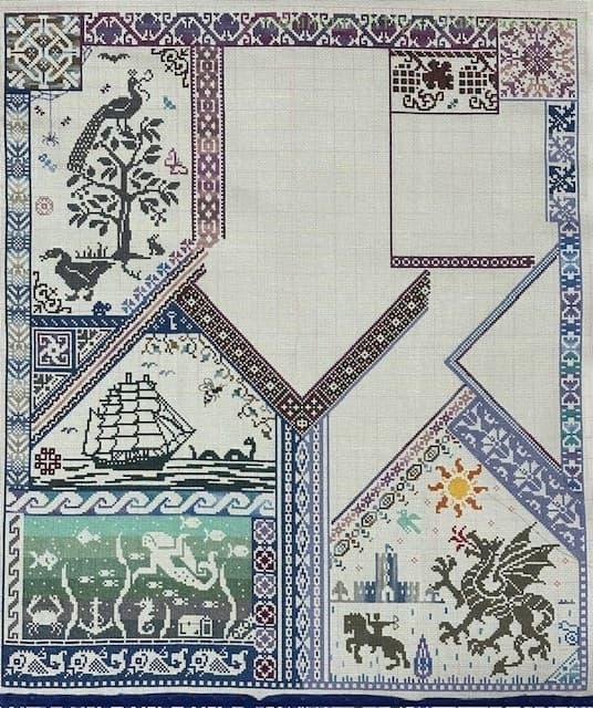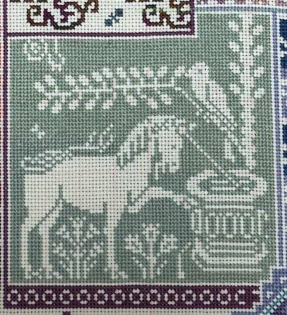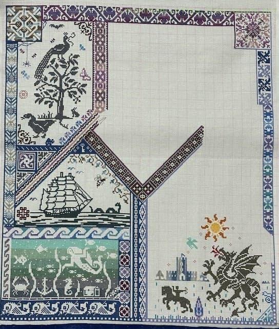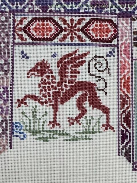実はグリフォンの位置が前回の図案よりもずれていたので、チョウチョと猫?の位置がぎりぎり被ってしまい窮屈な感じに。