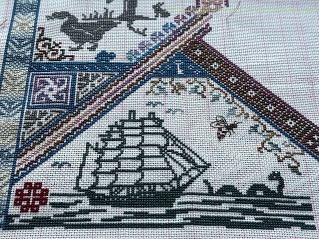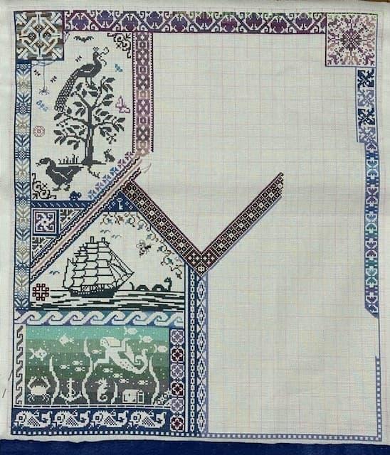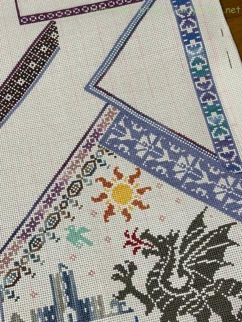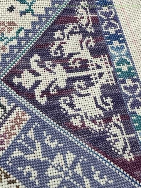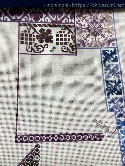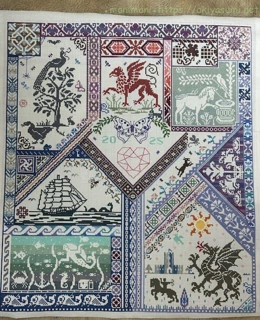三角スペースを埋め尽くすように刺すのはちょっと大変でしたが、今回も刺しごたえがあって楽しく進められました。